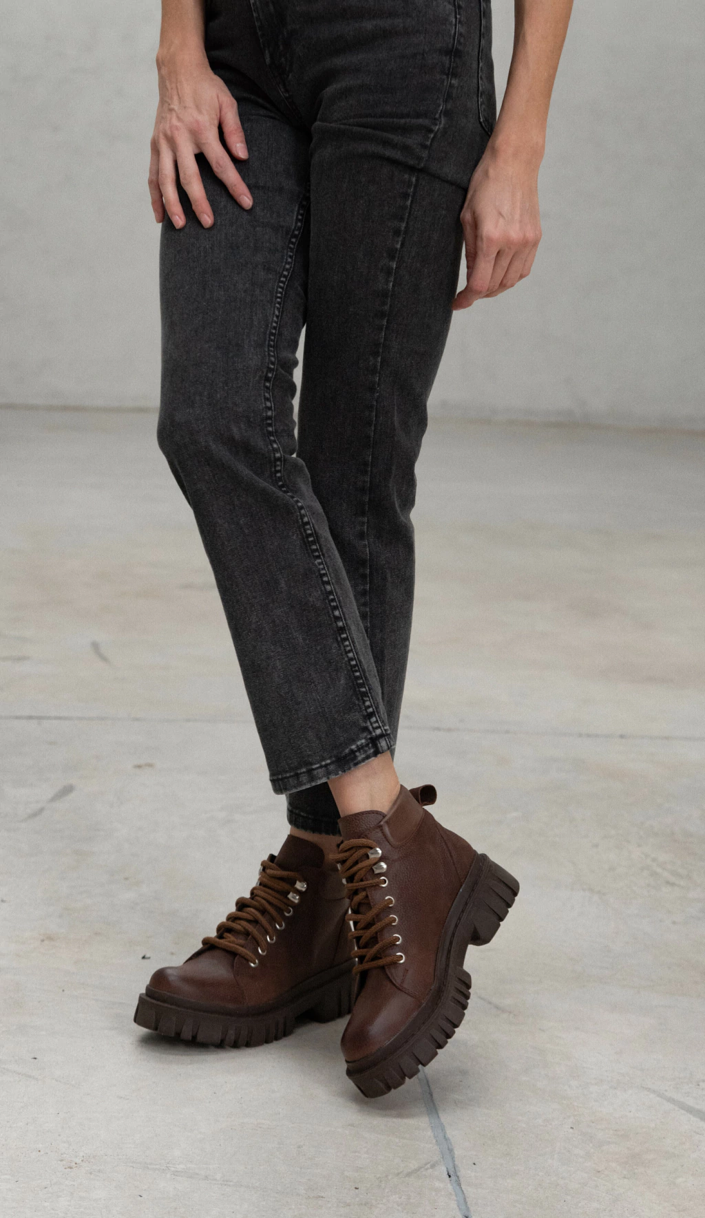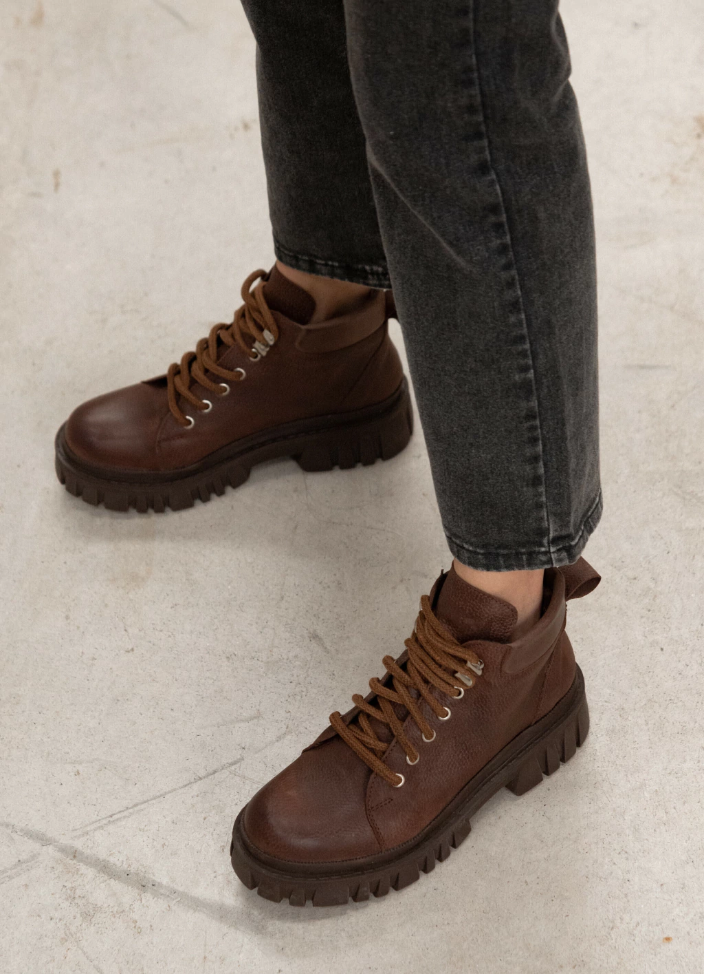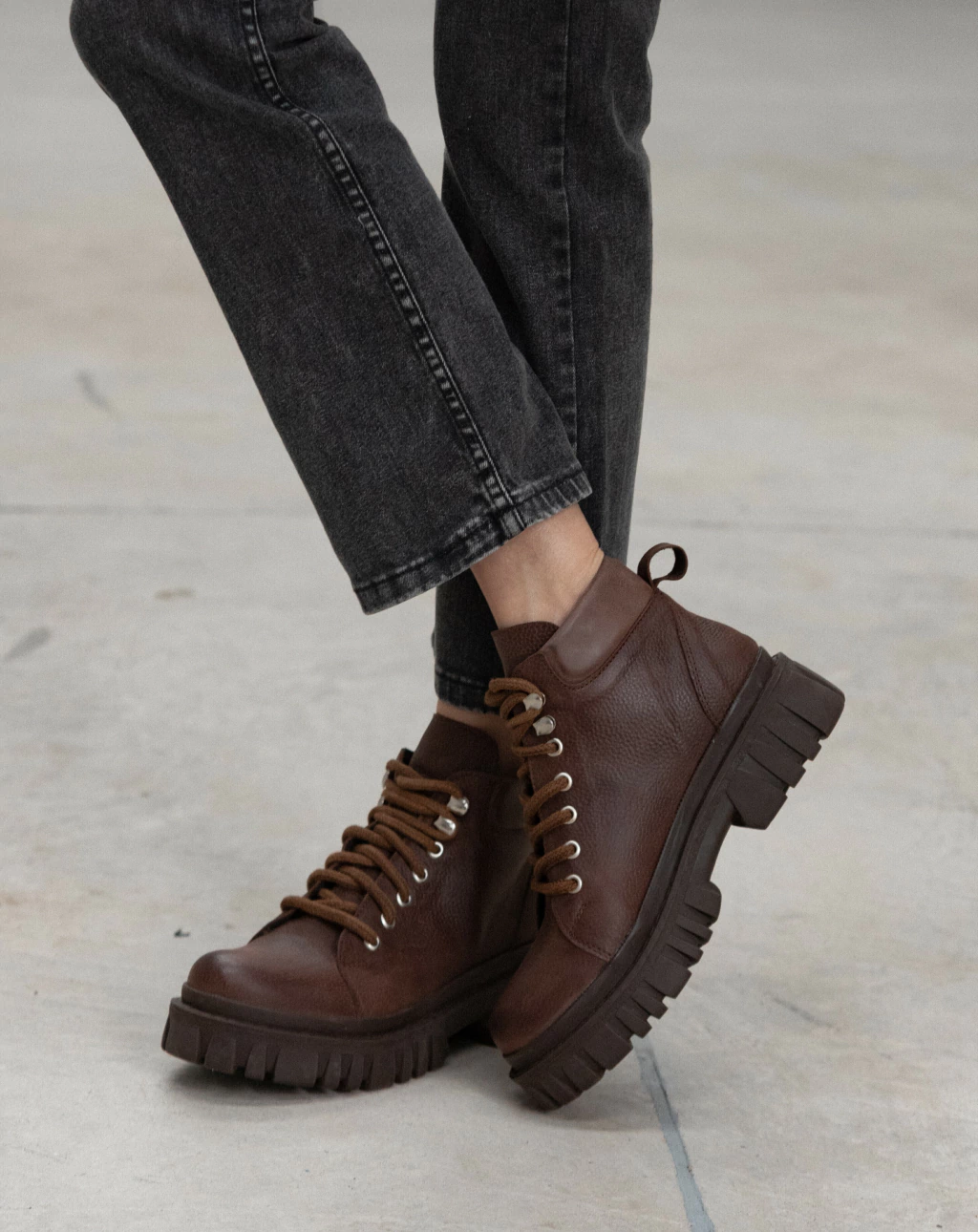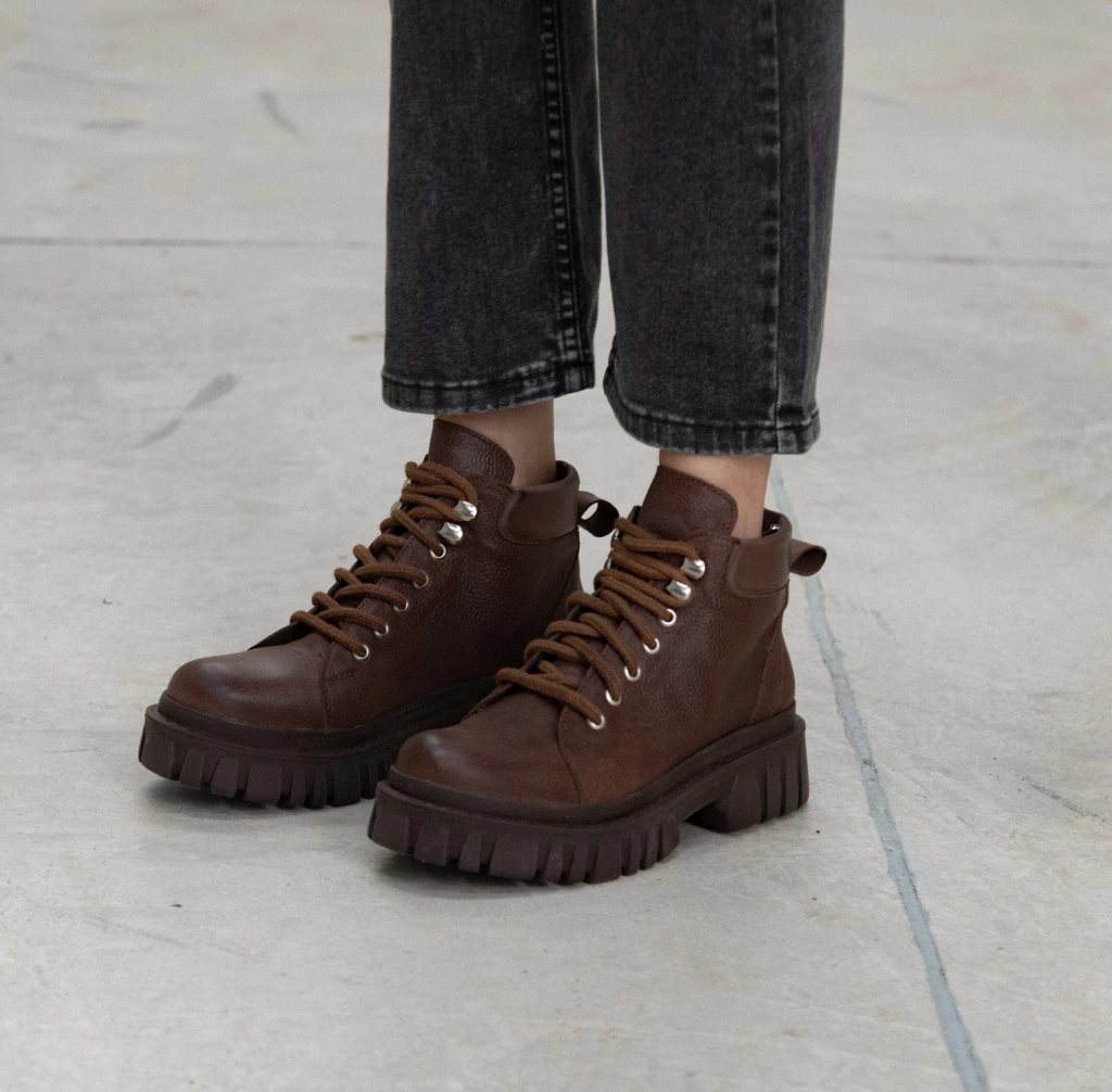Borcego acordonado de cuero chocolate, un clásico que no puede faltar, atemporal.