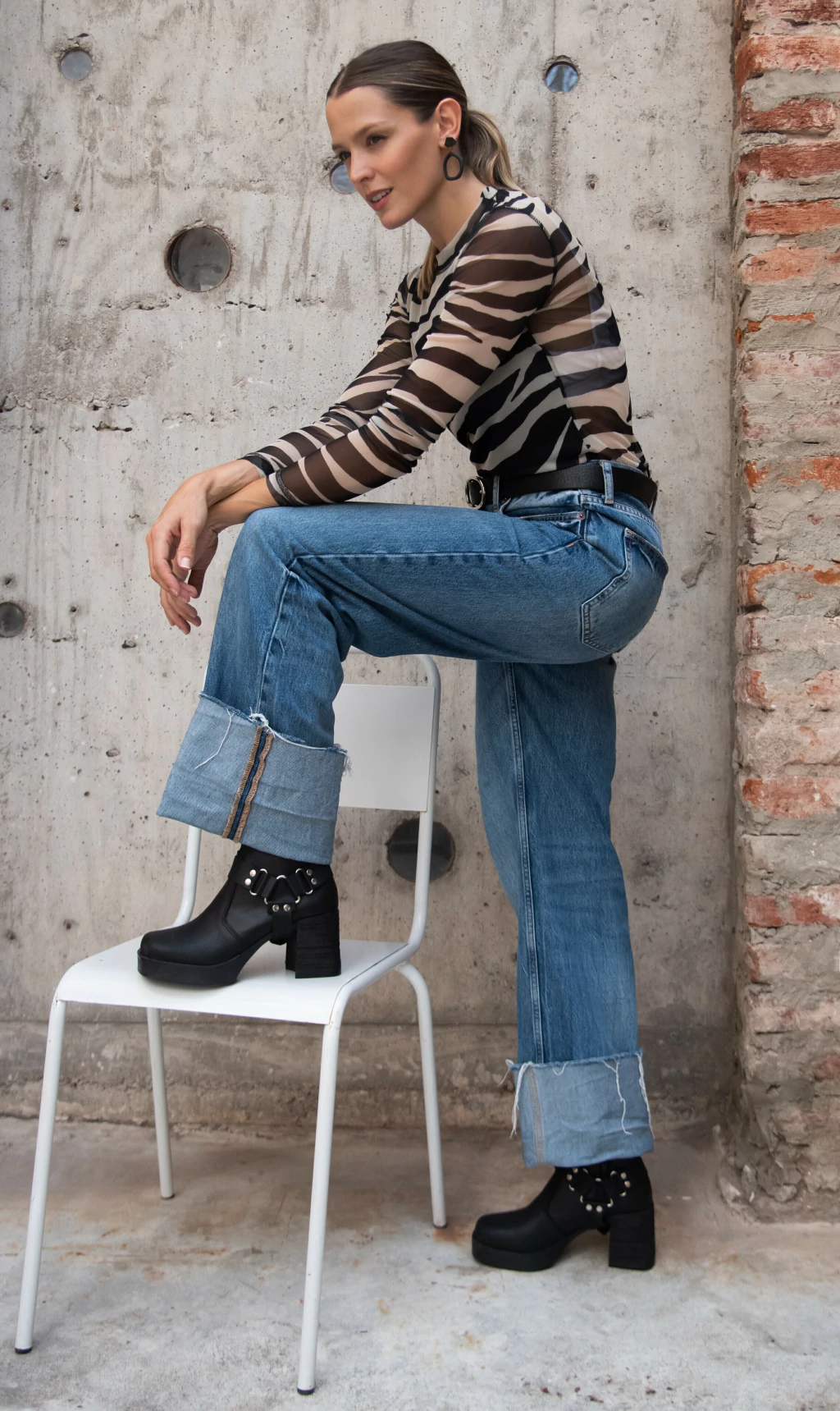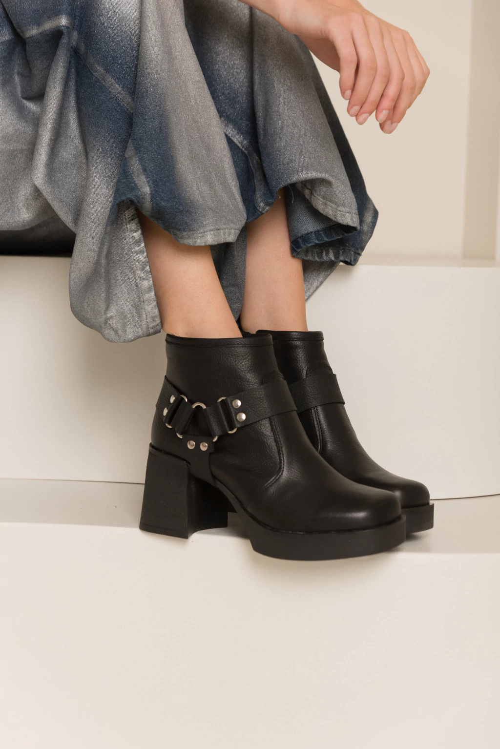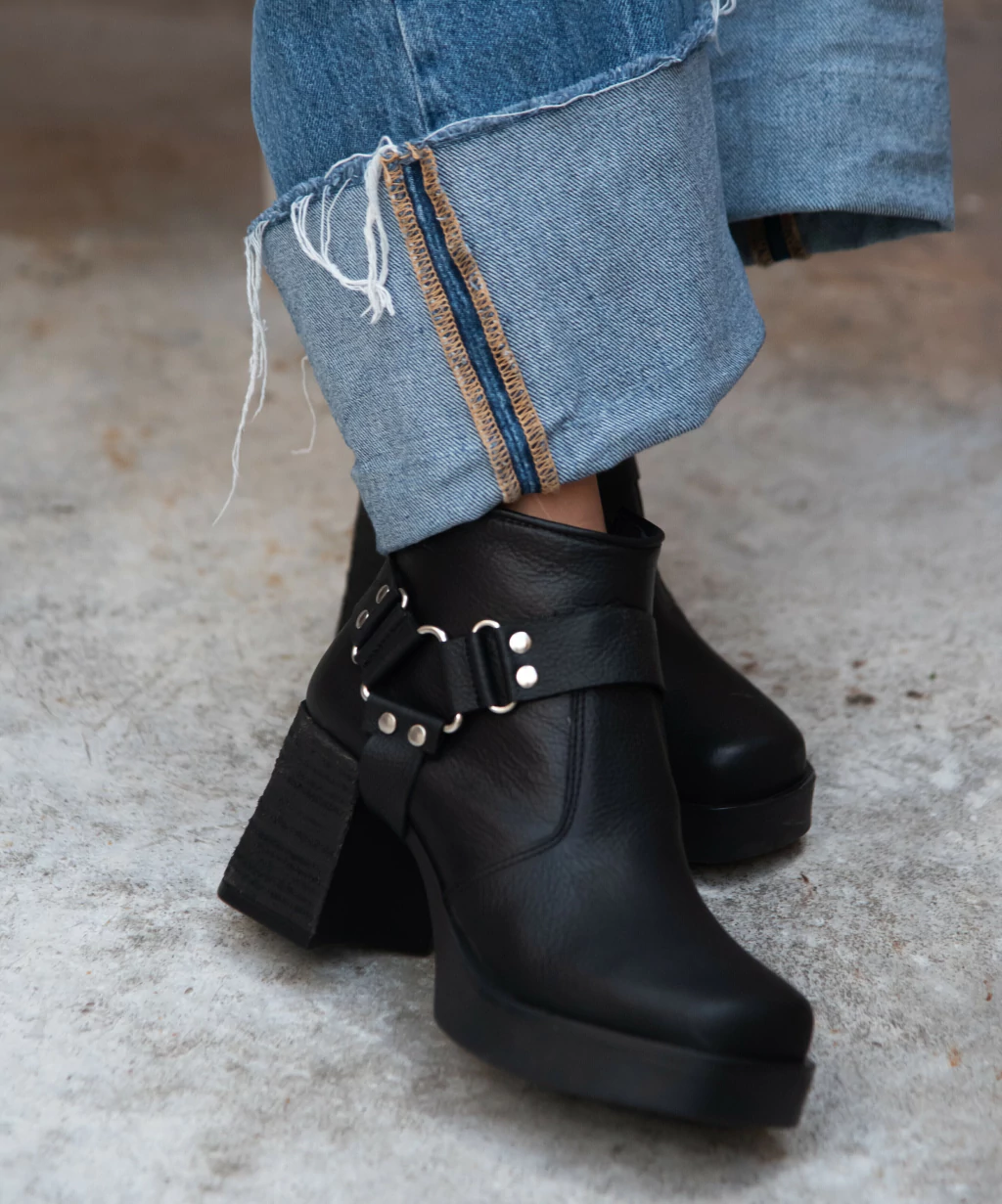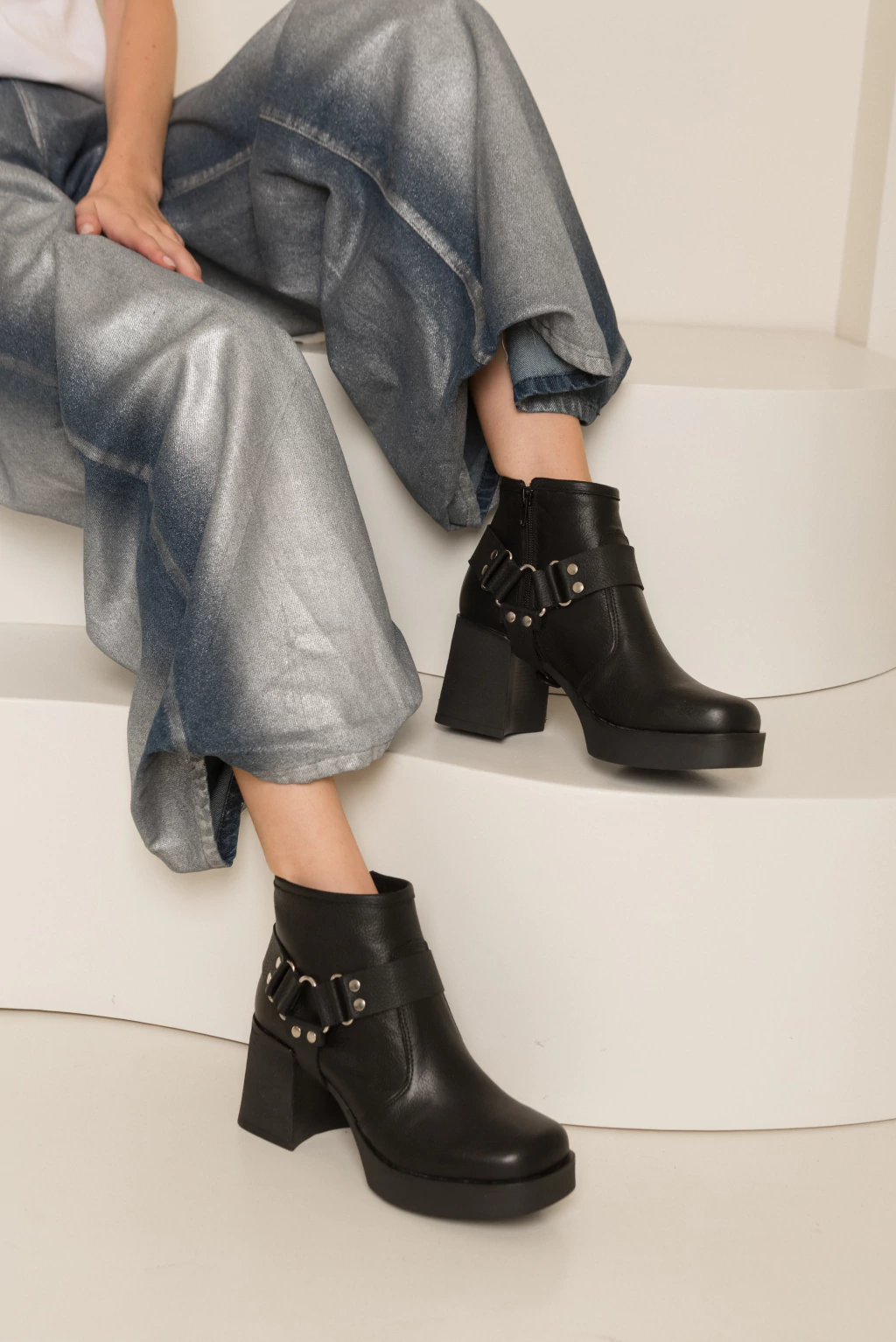 Bota de cuero con aplique desmontable. Cierre en su lateral.